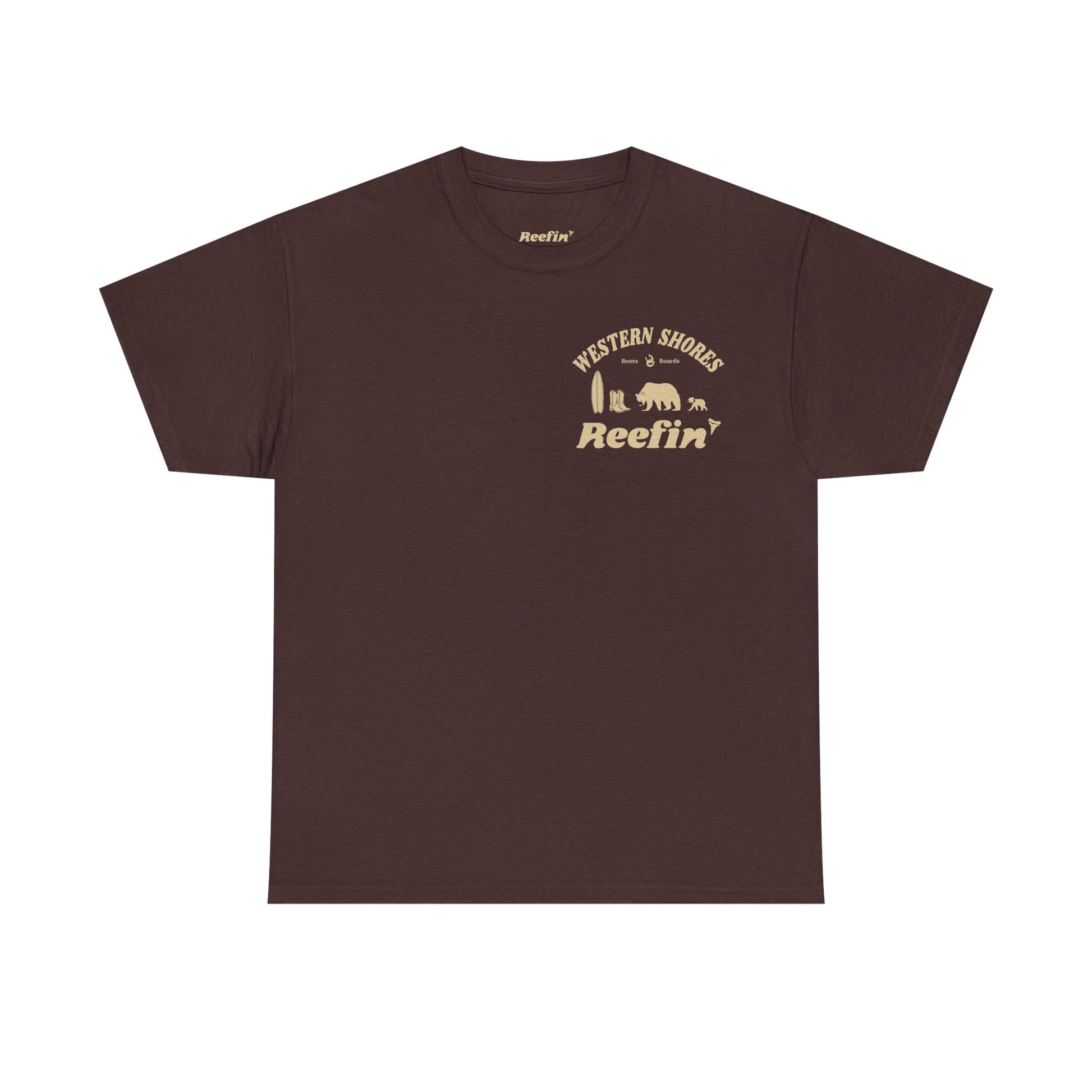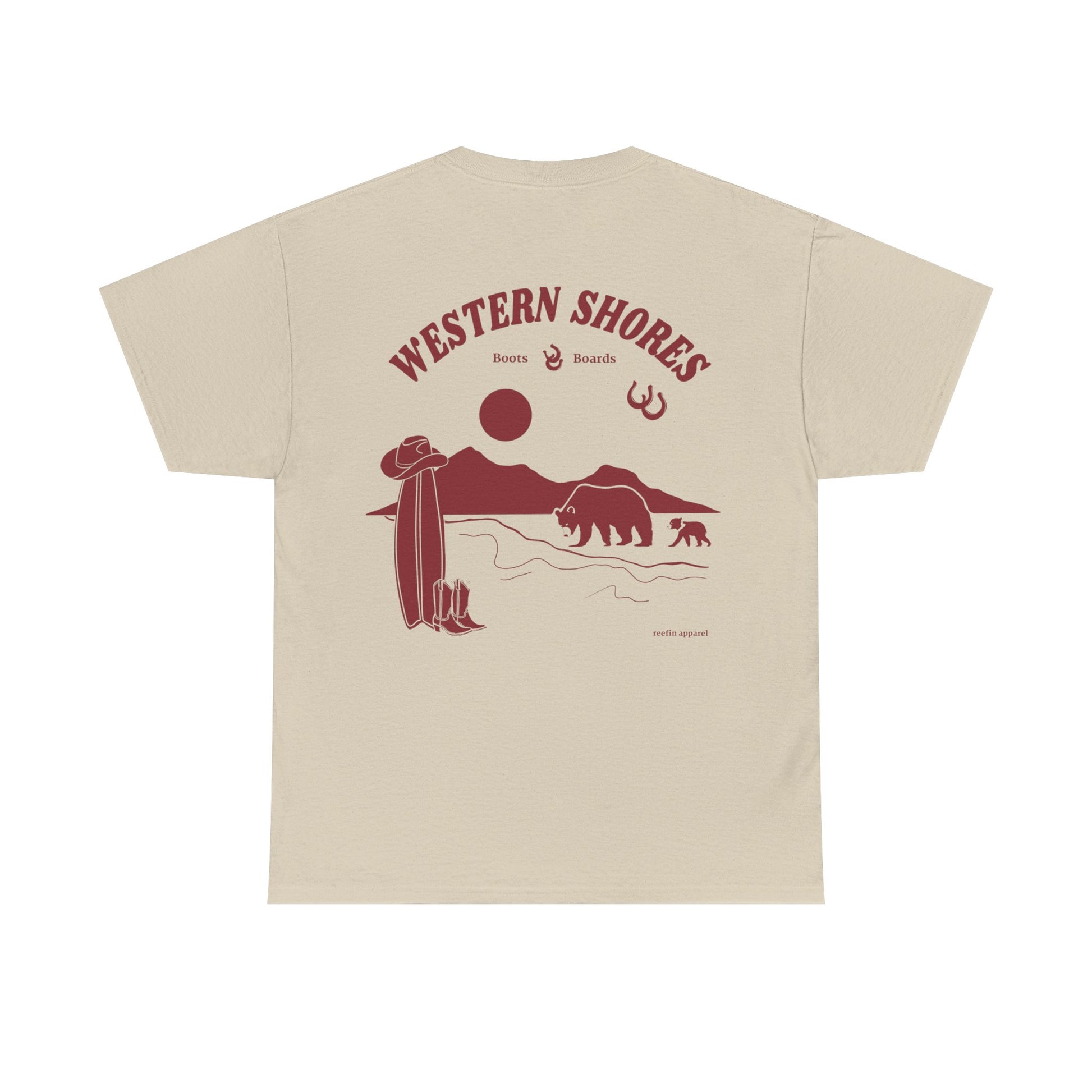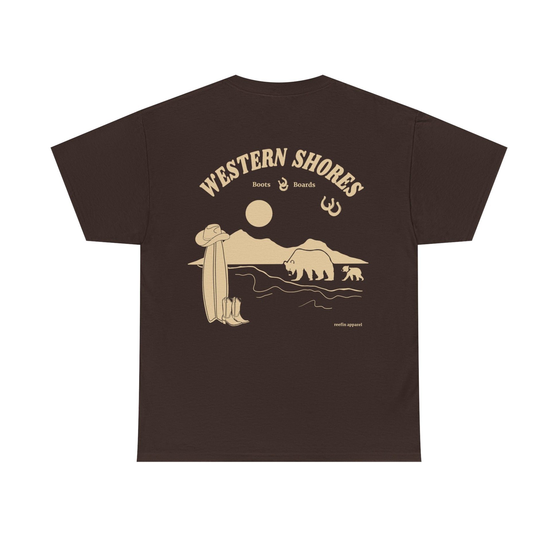 From the mountains to the waves, this tee is made for the wild-hearted. The Boots & Boards design blends West Coast surf culture with the rugged charm of country life—think bears on the shoreline, salt in the air, and a sunset worth chasing.